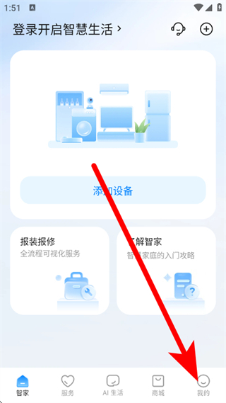 1、打开海尔智家,点击底部我的,切换至个人页面。
