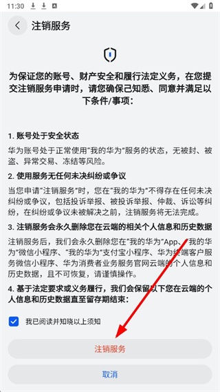 我的华为app注销服务在哪里
