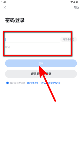 4、输入手机号和密码,勾选同意协议后点击登录按钮,即可完成密码登录操作。