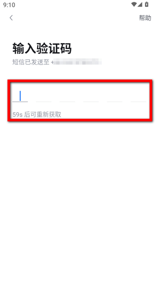 4、在验证码输入界面,输入收到的验证码,即可完成手机号登录操作。