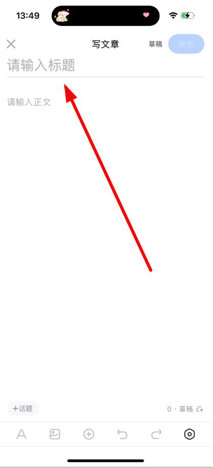 3、在写作页面的请输入标题处输入文章标题,并在下方输入正文内容,完成后可点击发布。