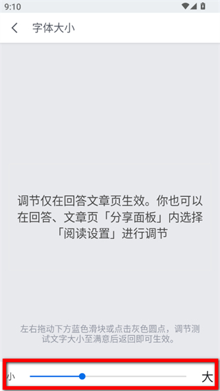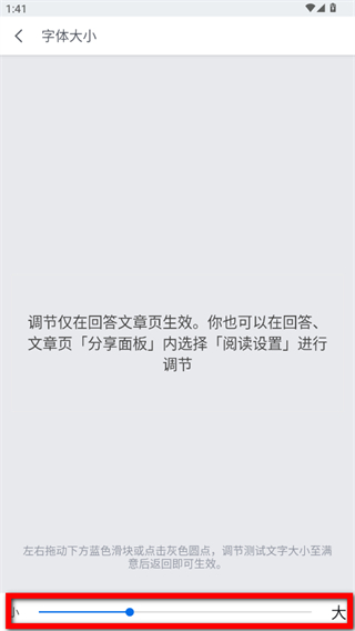 4、在字体大小设置界面,拖动滑块调节字体大小至满意,即可完成设置。