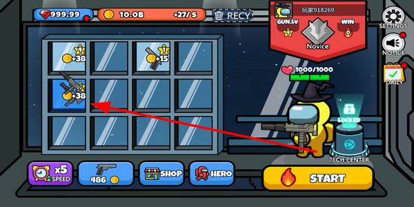 1、主界面选择对应武器道具,通过合成积累升级武器,提升战斗能力后点击开始进入对局。