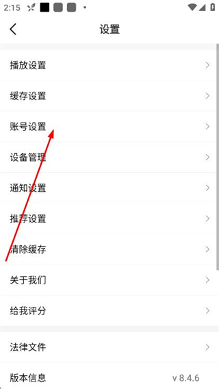 3、进入设置页面后,点击账号设置选项。