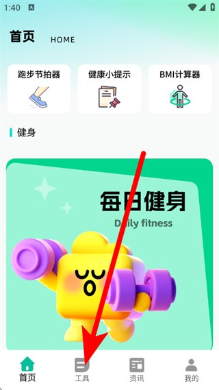 1、打开乐健跑,点击底部工具按钮,进入打卡页面。