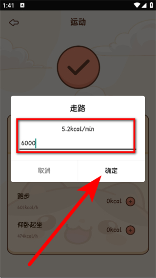 4、在弹窗里调整运动数值,确认参数后,点击确定,完成走路项目的运动打卡。
