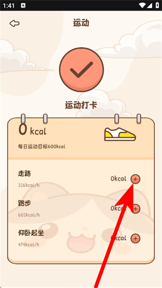 3、在运动打卡页面,点击走路项目右侧的加号,弹出走路的运动参数设置弹窗。