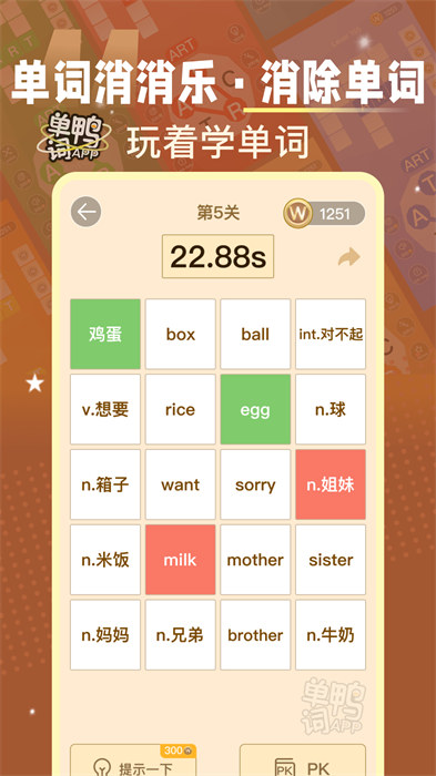 2、游戏闯关:摒弃枯燥无味的单词背诵,通过游戏闯关的方法,玩着就把单词背完了;