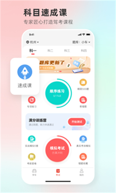 提供小车、货车、客车、摩托车等全车型考试题库,覆盖完整学车流程,从报名到考试,一路顺利拿证,堪称保姆式驾考服务体验。邀请驾驶员培训专家深度剖析交规讲解驾照考试技巧,通过科学有效学习方法,助力学员快速通过驾照理论考试,顺利拿驾照。