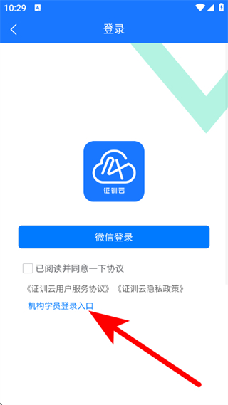 3、在登录界面,点击机构学员登录入口,进入身份证号码登录页面。