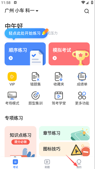1、在驾考刷题首页,点击底部的我的选项,进入个人中心页面。