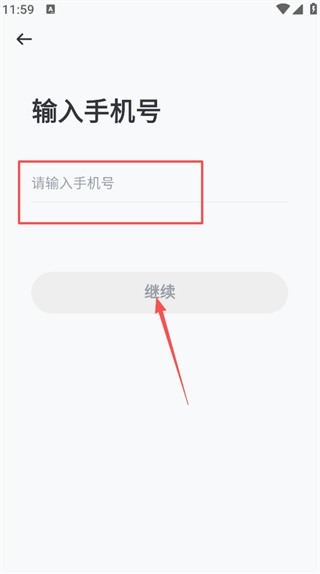 4、在输入手机号页面,填写请输入手机号,点击继续按钮进入验证码输入页面。