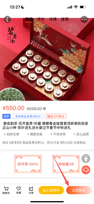 4、在商品详情页面,点击底部立即购买按钮,可进行该商品的购买操作。