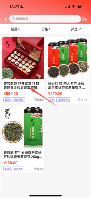 3、在绿茶商品列表中,点击目标商品,可进入该商品的详情页面。