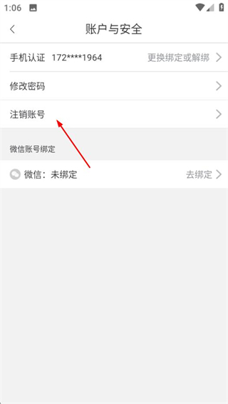 4、账户与安全页面点击注销账号可进入申请注销页面。