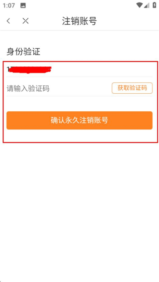 6、身份验证界面填写验证码后点确认永久注销账号即可完成注销。