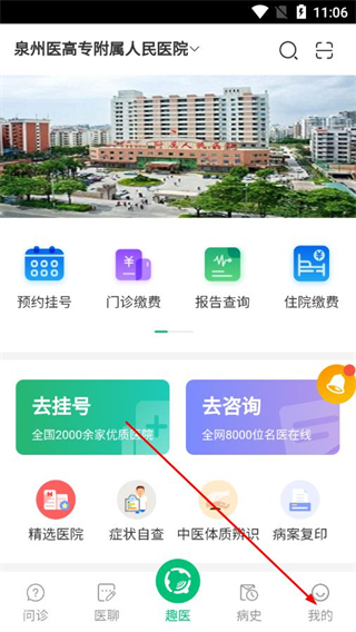 1、打开趣医院app,点击底部导航栏的我的选项。