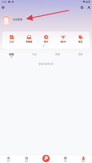 1、在酷狗唱唱的歌房页面底部导航栏,点击消息选项,进入消息中心界面。
