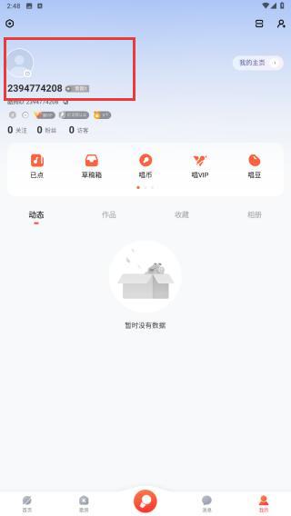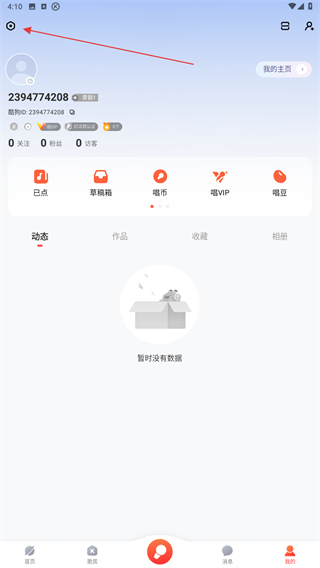 1、启动酷狗唱唱,在首页导航栏点击我的按钮。