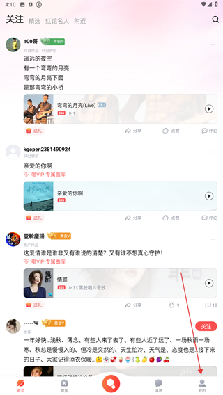 1、打开酷狗唱唱的APP,进入首页点击右下角我的图标。