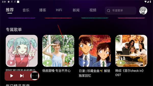 1、在腾讯爱趣听首页,找到专属歌单板块中的目标歌单,点击即可进入该歌单页面。