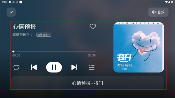 3、在歌曲列表页点击对应歌曲,即可进入该歌曲的播放页面开始播放。