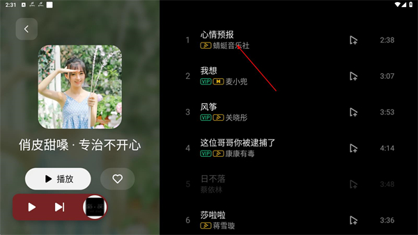 2、在目标歌单页面,选择歌单内的歌曲,点击可进入该歌曲所在的歌单列表页。