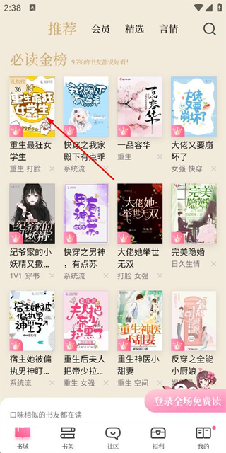 1、在书城推荐页面点击目标书籍,进入书籍详情页面。