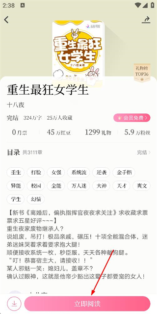 2、在书籍详情页面点击立即阅读按钮,进入书籍阅读页面。
