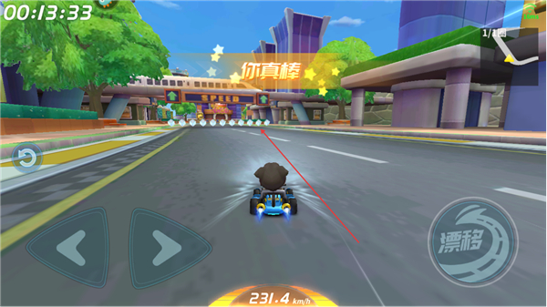 3、使用漂移功能点击漂移键,过弯时积累加速能量,提升行驶速度。
