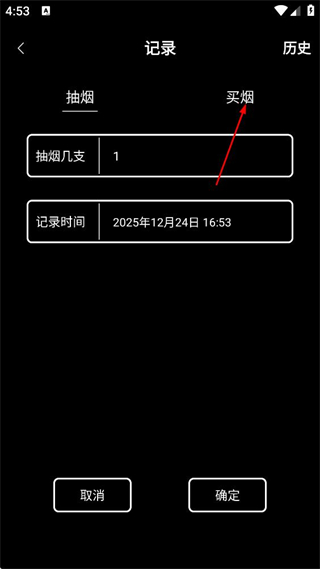 2、在记录页面,点击买烟的选项,切换至买烟信息记录的表单页面。