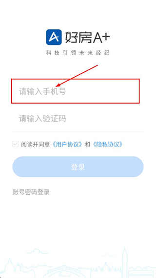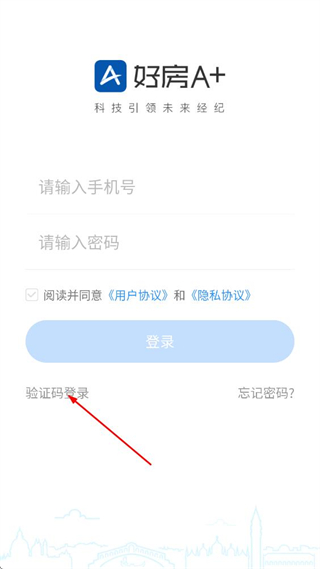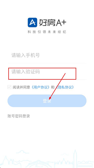 1、在好房登录页,点击验证码登录的选项,切换至验证码登录页面。