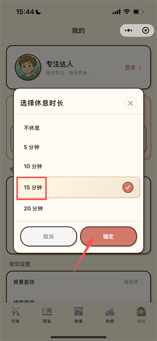 3、在休息时长弹窗中,选择目标时长后点击确定按钮,即可完成休息时长的设置。