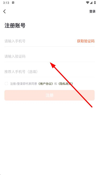 4、在注册账号页面输入手机号,点击获取验证码,输入收到的验证码,即可完成账号注册。