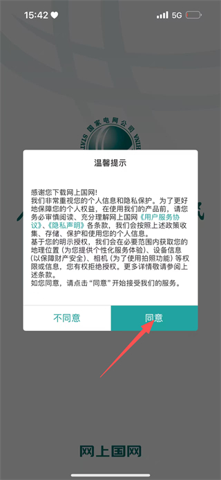 1、阅读用户服务协议和隐私声明后,点击同意,进入网上国网应用。
