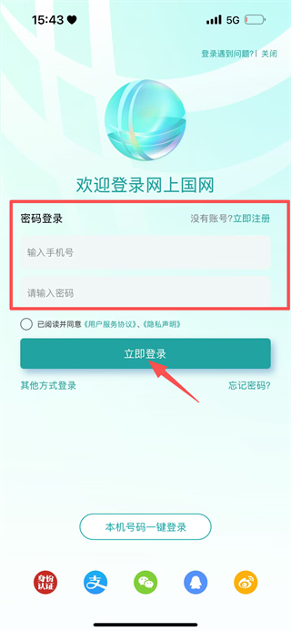 4、在登录页面,填写手机号和密码,点击立即登录,完成登录。