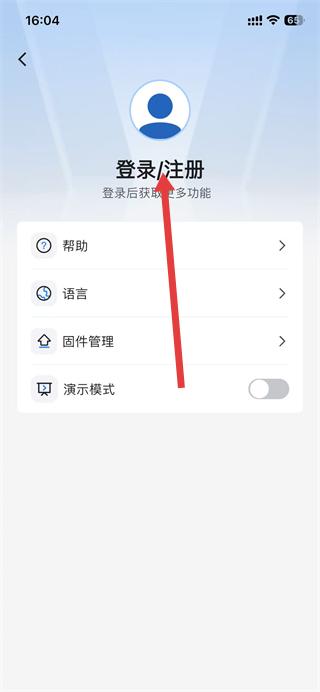 2、进入个人相关页面后,点击登录/注册选项。