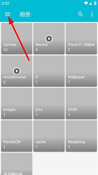 1、打开果仁相册app,点击页面左上角的菜单按钮。