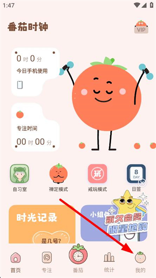 1、打开番茄时钟app,点击底部导航栏的我的选项。