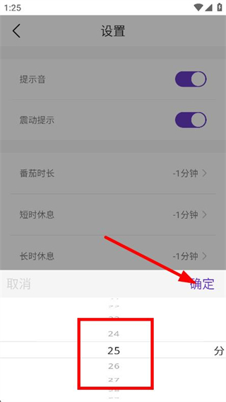 3、滑动数字选择设置时长,点击确定,即可完成设置。