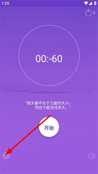 1、打开紫色番茄钟app,点击页面左下角的设置图标。