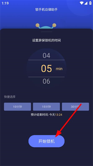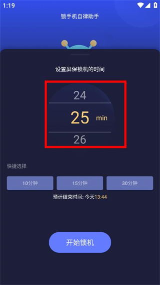 2、进入屏保锁机设置页面,滑动数字选择器调整锁机时长。
