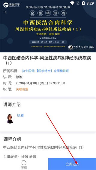 3、在课程详情页,点击立即进入,即可观看该直播的回放内容。