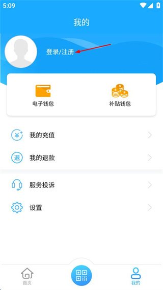 2、在我的页面找到登录注册按钮,点击该按钮,进入到登录信息填写界面。