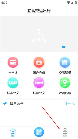 1、打开宜昌交运出行主页,点击底部导航栏的我的选项,进入对应的个人页面。