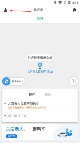 2、在365约车主页面,找到页面左上角的头像图标,点击该图标进入登录页面。
