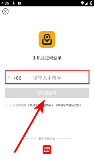 3、在登录页面选择手机验证码登录,在手机号框中填写要手机号,点击获取验证码。