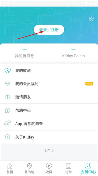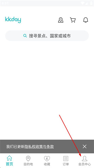 1、打开KKday主页,找到页面底部的会员中心选项,点击该选项进入会员中心页面。