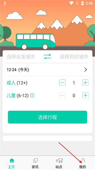 1、打开捷乘巴士主页,找到页面底部的我的选项,点击该选项进入个人中心页面。