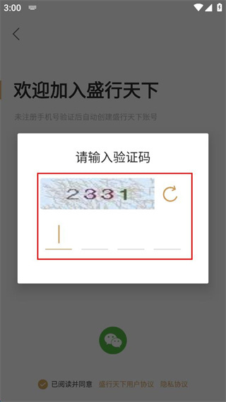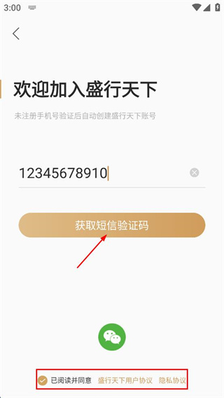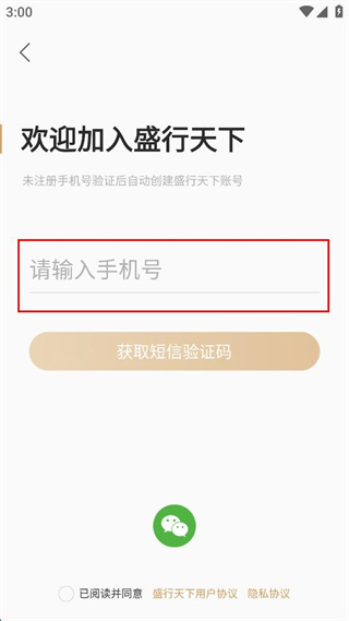 2、进入欢迎加入盛行天下页面,在手机号输入框填写个人常用的手机号码信息。